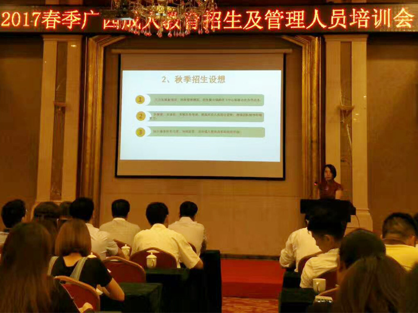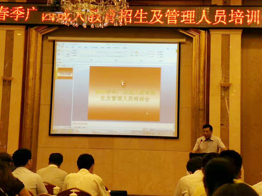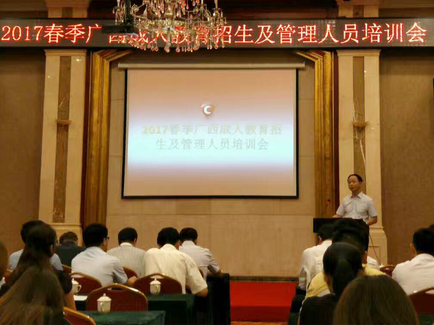 5月12日,廣西電大2017春季網(wǎng)絡(luò)教育招生及教學(xué)管理人員培訓(xùn)會在賀州勝利召開,廣西電大副校長楊雄、廣西電大網(wǎng)絡(luò)教育學(xué)院院長陶群、副院長唐建軍、各市電大校領(lǐng)導(dǎo)以及各校外學(xué)習(xí)中心120人參加了會議,育才教育黨支部書記、董事長蔣華、集團副總、柳州市育才教育培訓(xùn)中心校長王志參加了會議。會議分為兩部分,上午為素質(zhì)拓展,下午為正式會議。