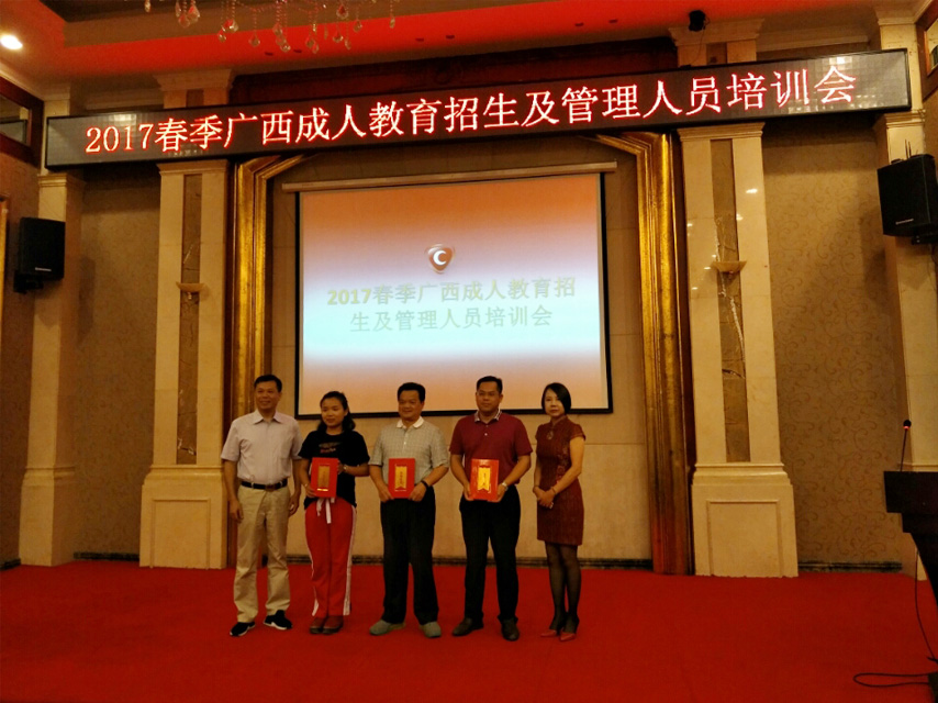 會上表彰了優(yōu)秀學(xué)習(xí)中心、招生先進單位、招生先進個人幾個等次獎項。育才教育學(xué)習(xí)中心因各項工作出色,榮獲2017年春季全區(qū)網(wǎng)絡(luò)教育“優(yōu)秀學(xué)習(xí)中心”稱號。育才黨支部書記蔣華老師榮獲招生先進個人一等獎,校長王志榮獲招生先進個人三等獎。