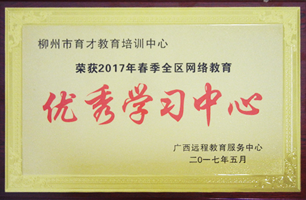 育才教育榮獲2017年春季全區(qū)網(wǎng)絡(luò)教育“優(yōu)秀學(xué)習(xí)中心”稱號