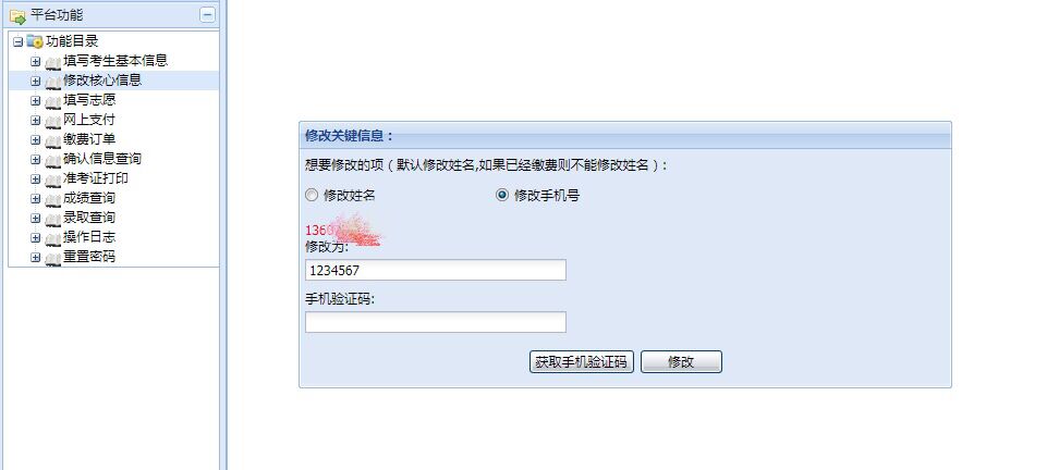 二、登錄后點(diǎn)擊“修改核心信息”,選擇“修改手機(jī)號(hào)”,輸入正確的手機(jī)號(hào)碼,點(diǎn)擊“獲取手機(jī)驗(yàn)證碼”并在文本框中輸入收到的手機(jī)短信驗(yàn)證碼,點(diǎn)擊“修改”即可。