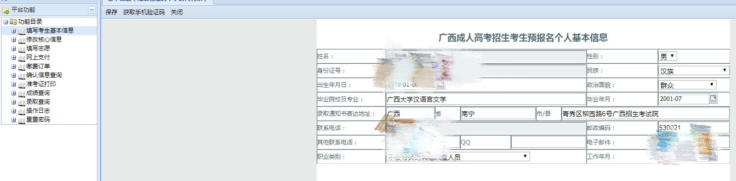 三、點(diǎn)擊“填寫考生基本信息”,填寫表中的各項(xiàng)內(nèi)容后,點(diǎn)擊左上角的“保存”按鈕。