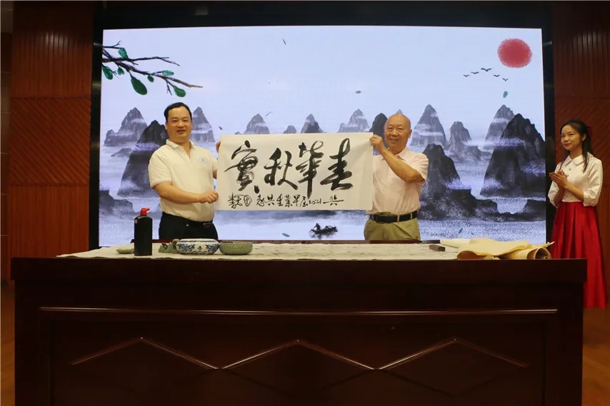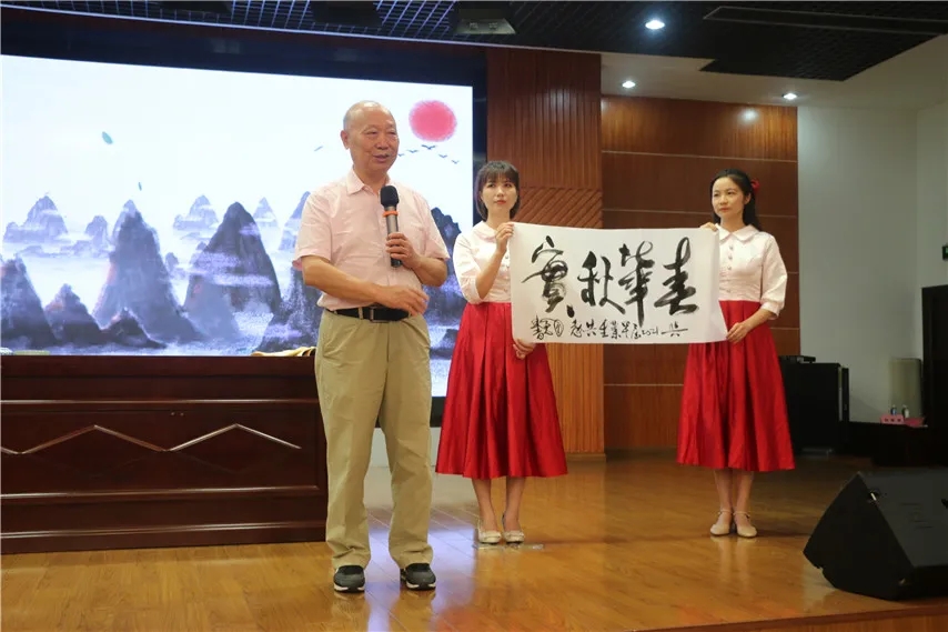 陽國亮教授現(xiàn)場書法題詞:春華秋實(shí)。