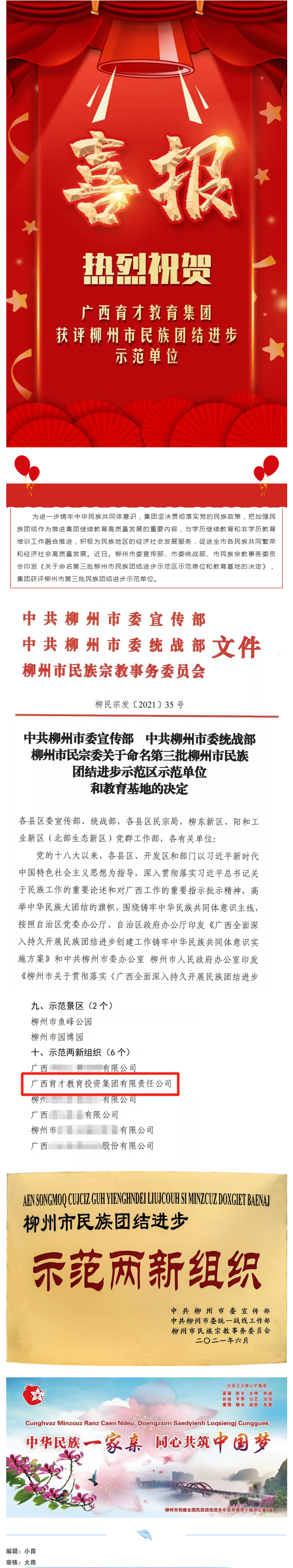 喜報丨祝賀集團獲評柳州市“民族團結(jié)進步”示范單位