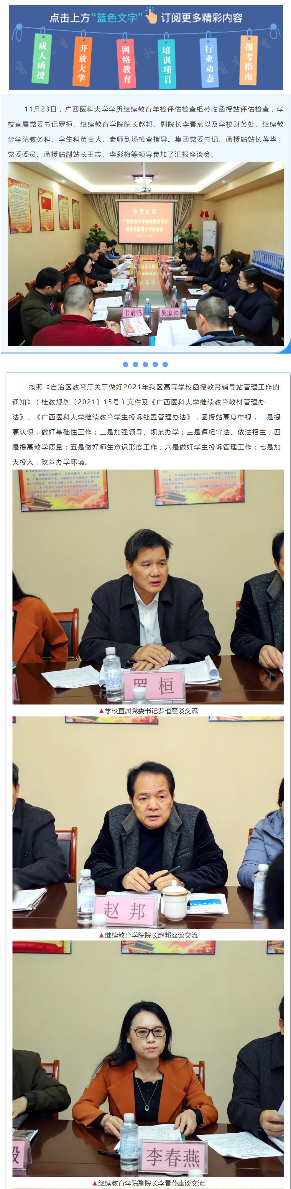 廣西醫(yī)科大學(xué)學(xué)歷繼續(xù)教育年檢評估檢查組蒞臨集團(tuán)評估檢查