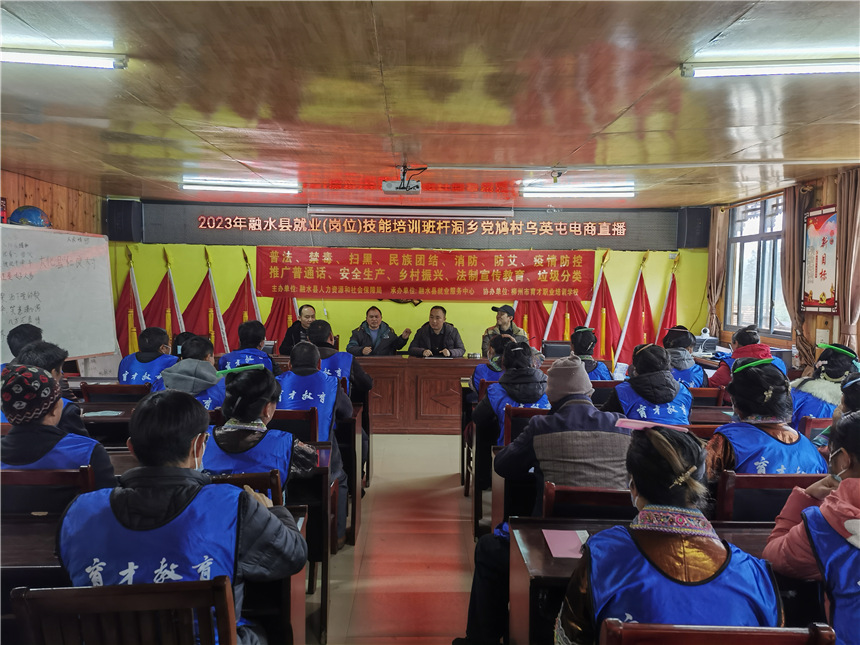 3月20日,由集團培訓學院承辦的“2023年融水縣就業(yè)(崗位)技能培訓班——桿洞鄉(xiāng)黨鳩村烏英屯電商直播”在烏英屯順利開班。桿洞鄉(xiāng)就業(yè)社保服務中心主任王衍琛,黨鳩村村支書梁成張,二級電子商務師陳勇高出席開班儀式,共有33名黨鳩村學員參加了此次培訓。本次培訓旨在服務于鄉(xiāng)村振興,為農(nóng)民穩(wěn)步增收助力,拓寬農(nóng)民就業(yè)增收渠道。