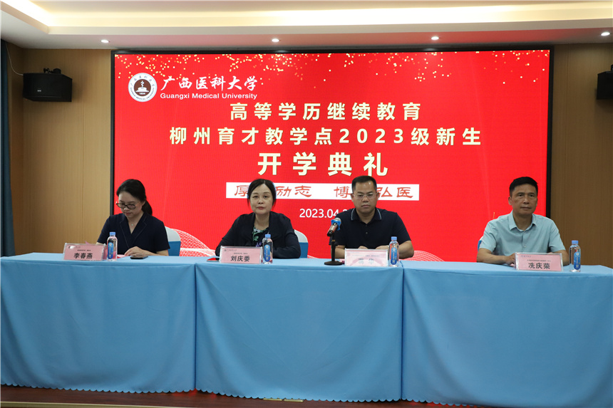 4月20日上午,廣西醫(yī)科大學高等學歷繼續(xù)教育柳州育才教學點2023級新生開學典禮在集團屏山校區(qū)隆重舉行,廣西醫(yī)科大學繼續(xù)教育學院副院長劉慶委、李春燕,集團黨委書記、董事長、教學點負責人蔣華,柳州市委組織部派駐集團黨委第一書記冼慶榮以及來自柳州醫(yī)藥衛(wèi)生系統(tǒng)的80余名新生代表參加了開學典禮。