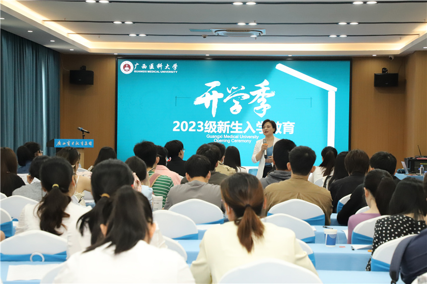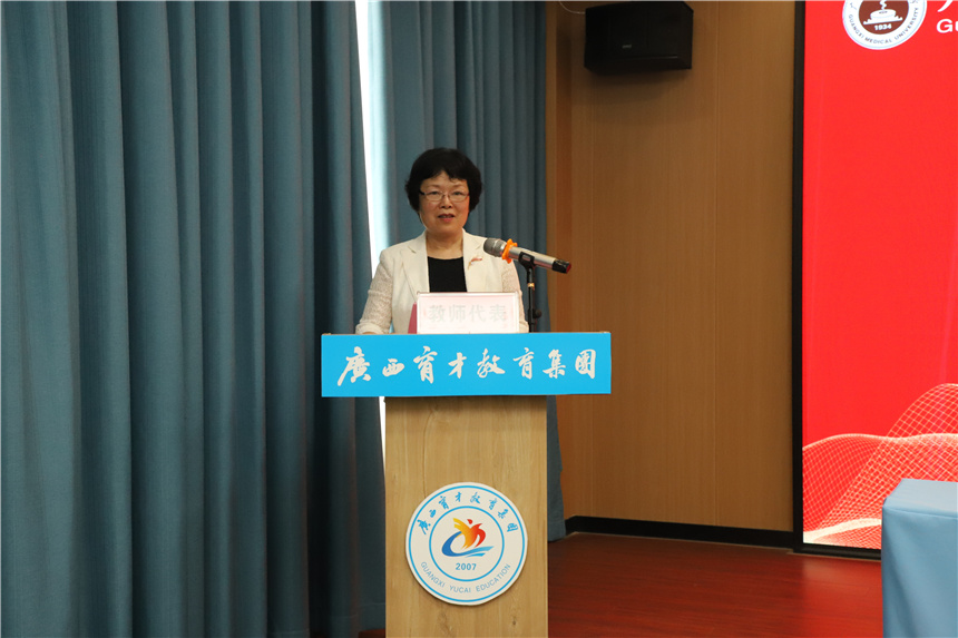 劉慶委副院長代表學校講話,她向同學們表示熱烈的歡迎和衷心的祝賀,向柳州育才教學點各位領導和教職工致以誠摯的感謝!劉慶委副院長向同學們介紹了光榮校史,共同感受學校櫛風沐雨、如詩如歌的奮斗故事,希望同學們以前輩為榜樣,開啟不一樣的“醫(yī)路人生”,做胸懷壯志、兼容并蓄、責任擔當、勇于奮進的“廣西醫(yī)大人”。她向同學們提出了三點希望:一要“厚德勵志、博學弘醫(yī)”,熔鑄母校精神、涵養(yǎng)母校氣質、浸潤母校精魂;二要淬煉本領,守護健康,在新時代踔厲奮發(fā),篤行不怠,勇?lián)姑?,用專業(yè)知識和能力,守護一方安康,續(xù)寫時代華章;三要不忘初心,矢志奮斗,盡快轉換角色,調整“換檔”,占領學習C位,實現(xiàn)人生規(guī)劃“彎道超越”。