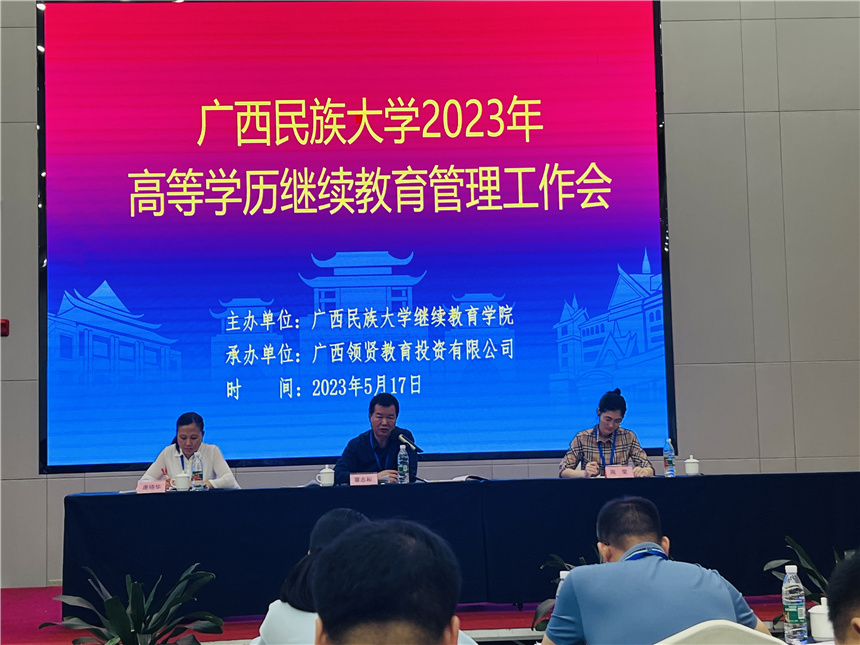 5月17日,廣西民族大學(xué)2023年高等學(xué)歷繼續(xù)教育管理工作會(huì)在玉林市順利召開(kāi),廣西民族大學(xué)繼續(xù)教育學(xué)院院長(zhǎng)覃志和,副院長(zhǎng)唐曉華以及各科室老師、教學(xué)點(diǎn)負(fù)責(zé)人共80余人參加了會(huì)議。我教學(xué)點(diǎn)負(fù)責(zé)人蔣華、副校長(zhǎng)王志參加了會(huì)議。