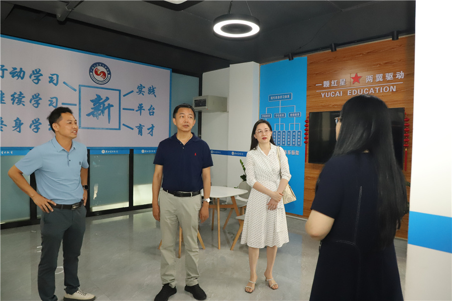 6月28日,南寧師范大學(xué)繼續(xù)教育學(xué)院院長(zhǎng)徐健,副院長(zhǎng)葉郁,成高中心主任伍應(yīng)樹(shù)一行3人蒞臨集團(tuán)柳州本部檢查指導(dǎo),集團(tuán)黨委副書(shū)記、副校長(zhǎng)王志,黨委委員、副校長(zhǎng)李彩梅,蔣亮陪同并參加了座談會(huì)。