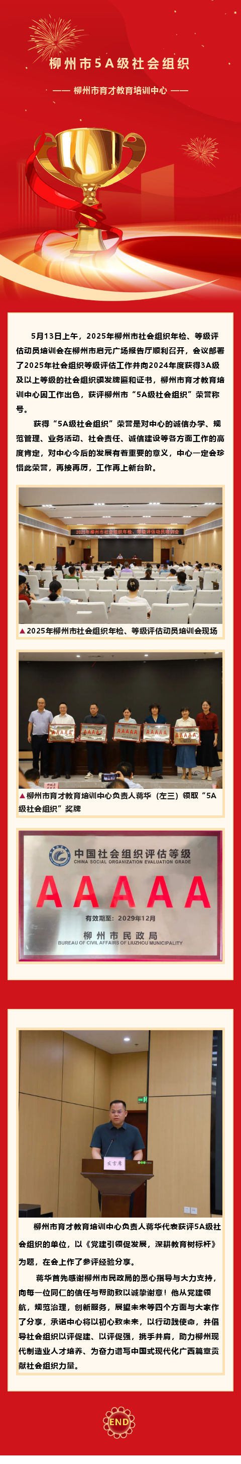 培訓(xùn)中心獲評(píng)柳州市“5A級(jí)社會(huì)組織”榮譽(yù)稱號(hào)