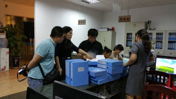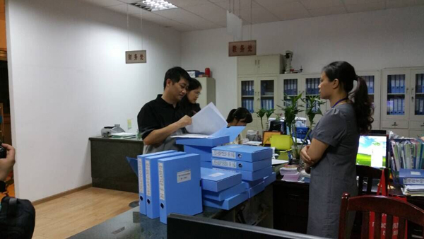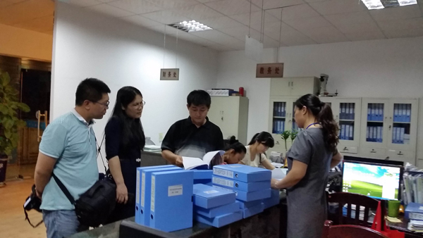 育才教務(wù)處韋主任把教學(xué)管理材料交給檢查組查閱