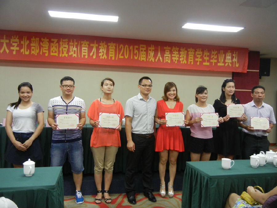 育才北部灣分校靈山縣教學(xué)點畢業(yè)典禮部分學(xué)員合影(教學(xué)點設(shè)在縣圖書館)