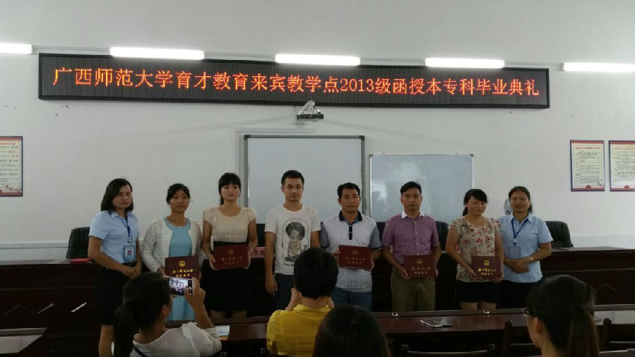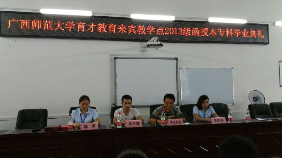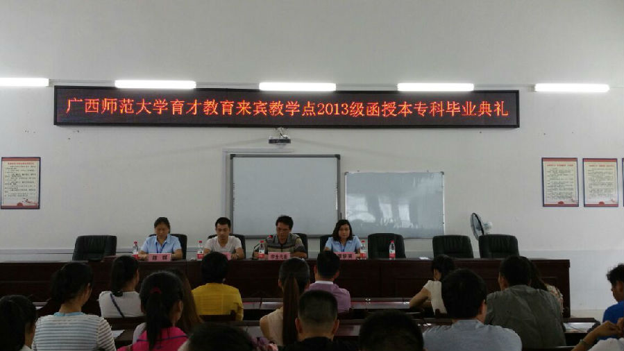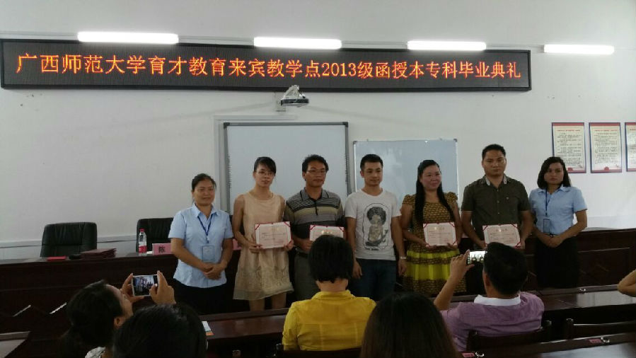 圖片新聞:育才教育來賓教學點隆重舉行廣西師范大學2015屆函授本??飘厴I(yè)典禮