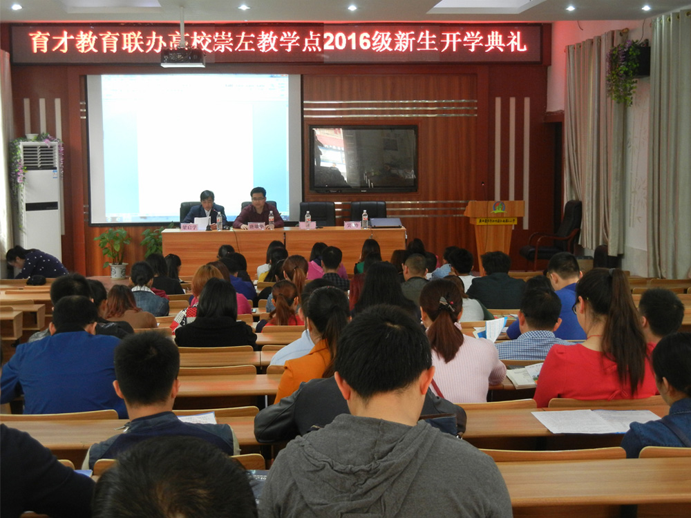 3月20日上午,育才崇左市分校隆重舉行育才聯(lián)辦高校崇左教學(xué)點非醫(yī)學(xué)類2016級成人高等教育新生開學(xué)典禮。廣西育才教育集團(tuán)負(fù)責(zé)人和育才崇左市分校領(lǐng)導(dǎo)唐雄華校長、梁啟學(xué)副校長、吳玲主任、黃曼老師、黃文老師出席。來自崇左市區(qū)和各縣的80多名成人函授本、專科新生參加了開學(xué)典禮。唐雄華校長做入學(xué)教育工作,梁啟學(xué)副校長主持開學(xué)典禮。