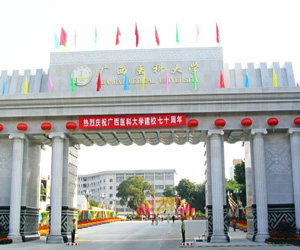 廣西醫(yī)科大學創(chuàng)建于1934年11月21日,坐落在具有“綠城”之稱的廣西壯族自治區(qū)首府南寧市,校本部占地面積71萬多平方米。學校是全國建校較早的22所醫(yī)學院校之一,是全國最早定點招收外國留學生、港澳臺學生和華僑學生的8所醫(yī)學院校之一,是教育部批準的有招收本科臨床醫(yī)學專業(yè)(英語授課)留學生資格的首批30所高校之一,是廣西政府重點建設的大學之一,是廣西醫(yī)學教育、醫(yī)學研究、臨床醫(yī)療和預防保健的中心。2008年,學校獲教育部本科教學工作水平評估優(yōu)秀成績。2011年,作為國家正式實施醫(yī)學專業(yè)認證后的第一所醫(yī)學院校通過了教育部臨床醫(yī)學專業(yè)認證、全國第三所大學接受并通過了護理學專業(yè)試點認證。 目前學校證朝著“立足廣西、面向全國、輻射東盟、走向世界的高水平的教學研究型醫(yī)科大學”的目標不斷邁進。
